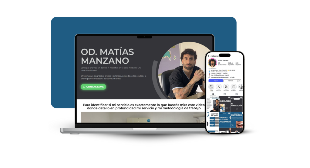 Matías tenía su agenda estancada y no lograba conseguir nuevos pacientes de forma recurrente. En el programa le entregamos un Instagram viralizado, contenido visual creado por guionistas, filmmaker, editores profesionales, y una web. En menos de un mes empezó a recibir solicitudes de pacientes que llegaban solos desde redes sociales